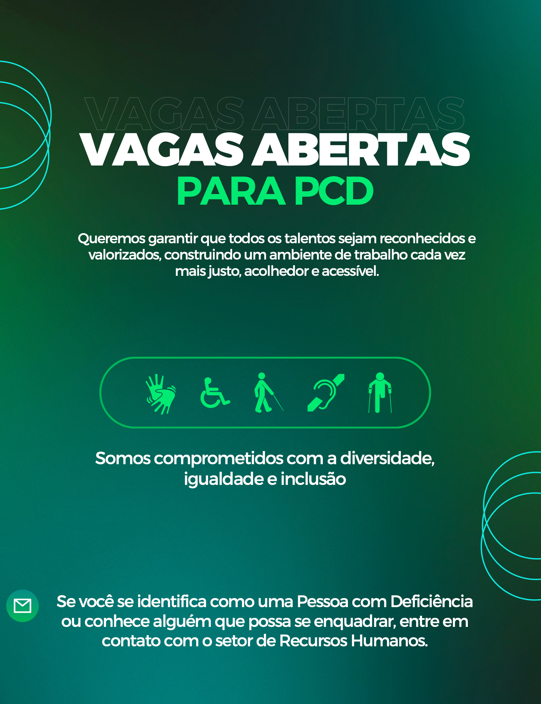 OBSERVAÇÃO: Caso você que faz a leitura nesse Post desejar enviar um CV - Curriculum Vitae para se candidatar às possíveis vagas de empresas envie para [email protected] com o título Candidato PCDs | Vagas.